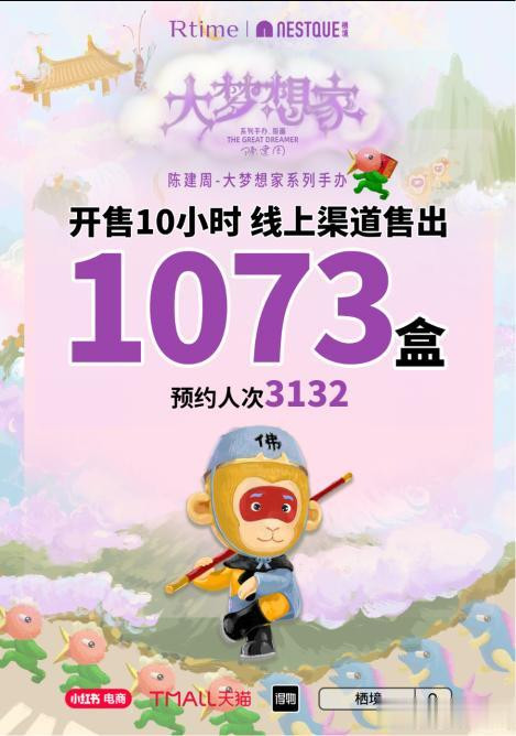 栖境厂牌一直有个美好的想法,就是想打破艺术和大众之间的那层窗户纸。在今年9月,它热热闹闹地推出了自己的首发系列产品——「大梦想家」系列手办和版画。其中手办在9月12日那天正式开卖,一上市就得到了市场的热烈回应,收藏玩家们都跟抢宝贝似的,当天就卖出去了1073件,还让陈昊宇、姚琛、陈丽君等好多明星都成了它的粉丝。